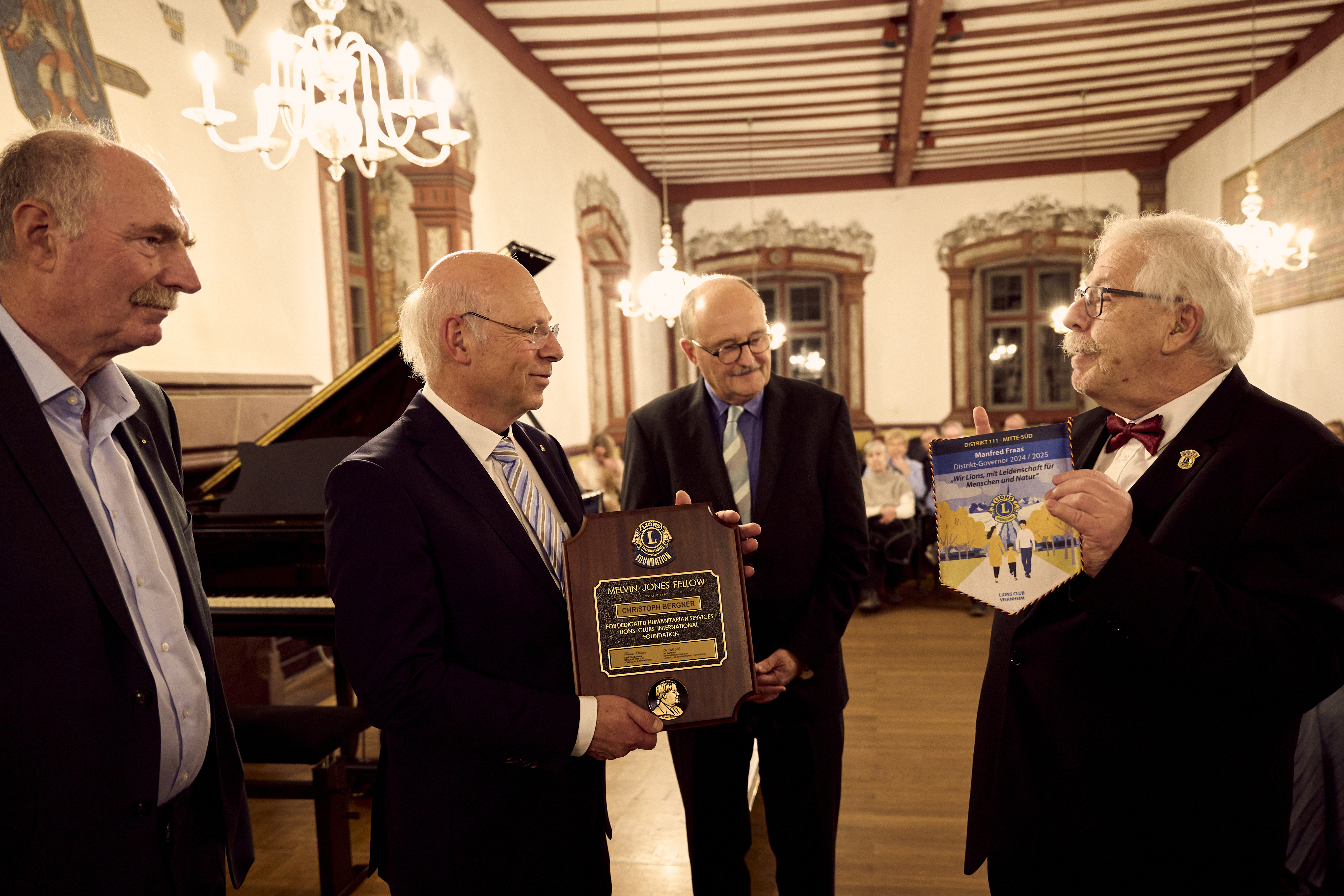 Unser langjähriges Lionsmitglied Christoph Bergner wurde für sein vielfältiges Engagement mit der höchsten Auszeichnung der Lions Organisation als „Melvin-Jones-Fellow“ geehrt. Christoph Bergner ist seit vielen Jahren der Organisator der alljährlichen Kammerkonzerte und setzt sich zudem für Bildungsprojekte in Tansania ein. Die Namensgebung der Auszeichnung geht auf den Geschäftsmann Melvin Jones zurück, der im Jahre 1917 die Lions Organisation in den Vereinigten Staaten gründete. Von ihm stammt der wichtigste Leitsatz der Lions „You can’t get very far until you start doing something for somebody else.“.